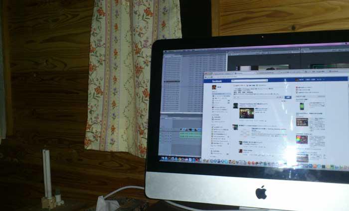 | 編集の仕事があるので、iMacを持参。 昼は農作業、夜はデスクワークの三日間。 |
